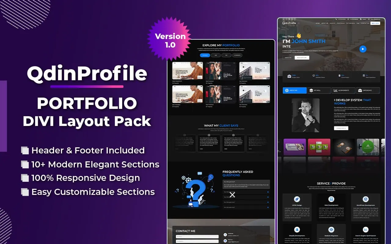 QdinProfile (Dark) | Personal Portfolio Divi Layout Pack